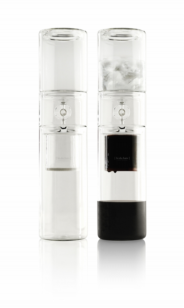 「我想讓沖咖啡的器具造型、功能都更簡單。」王旋著手畫設計圖、找材料、上網搜尋材料/製作廠商、拜訪廠商/師傅、與師傅來回溝通,進入打樣與試驗的快樂(或痛苦)循環。他說一開始完全沒想到要銷售,只是想做出一件「自己用得爽」的好看物件,直到某一次拿到打樣時,發現這款產品絕對有印上logo的價值,至此品牌bi.du.haev才應運而生。 王旋做設計喜歡「極簡」,「少到不能再少」是bi.du.haev的品牌精神。已取得專利的獨立無價冰滴咖啡系統正是一款極度簡化的作品,外觀如一玻璃圓柱,與傳統有支撐架的冰滴系統結構大異其趣,全手工玻璃製,連當中的過濾結構,都是幾乎不曾使用在咖啡器材上的玻璃濾板,極簡程度之純粹,更上一層。 「玻璃的研發跟製作花我非常多時間,玻璃超難做,我找的是一個老師傅,都是手工製作。」花時間、費功夫、量又少,老師傅怎麼願意接呢?「就要搏沫(培養感情)啊,他把你當朋友,才有可能願意做。」這個搏沫還挺真性情,王旋直言生產過程中最大的困難,就是沒辦法完全控制手工製造產生的些微誤差,只能跟師傅一再溝通、要求,每個物件都必須經過王旋一個一個檢查,不良率才從一開始的五成慢慢降到兩成內。
