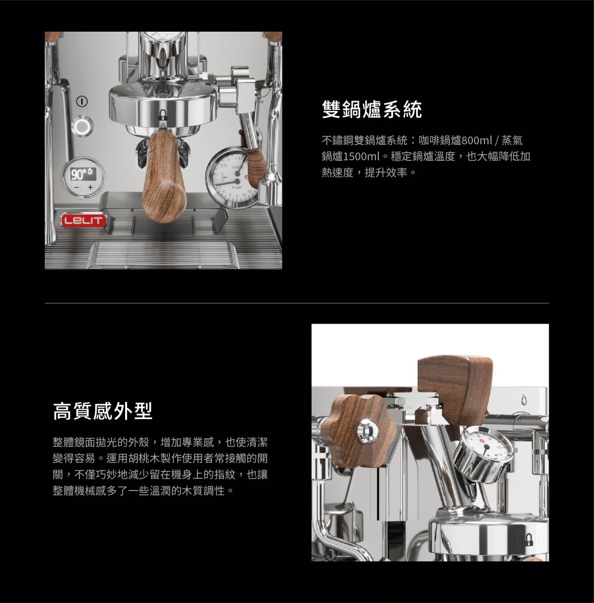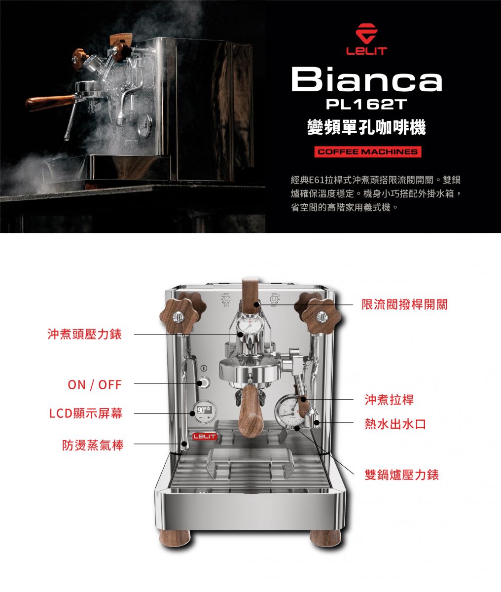 具有自動式開關的外掛式水箱,加快咖啡機清潔流程,兩組獨立鍋爐的設計,保持溫度穩定!