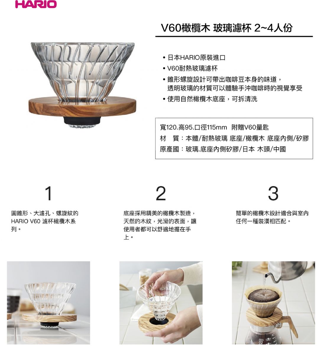 V60 橄欖木玻璃濾杯