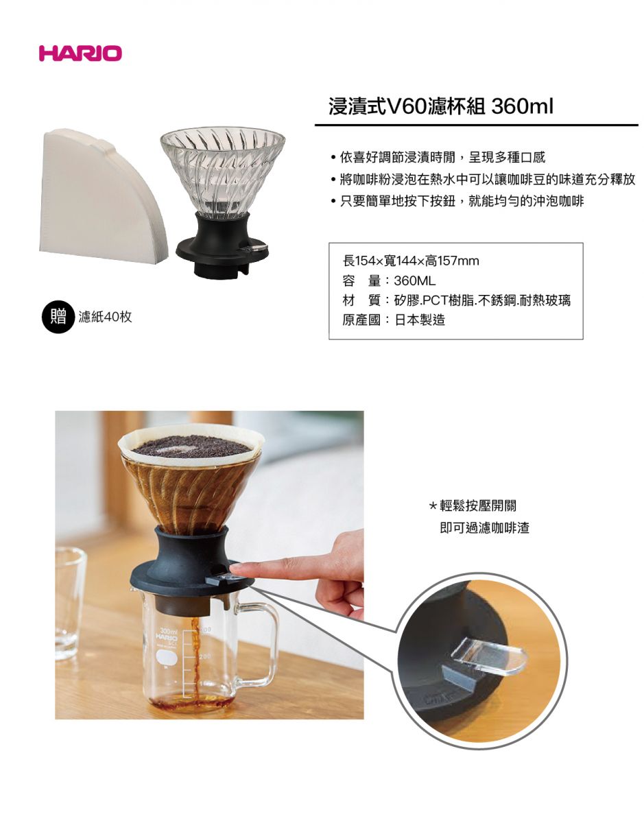 簡單且巧妙的沖泡方法, 只要一個開關即可過濾咖啡!