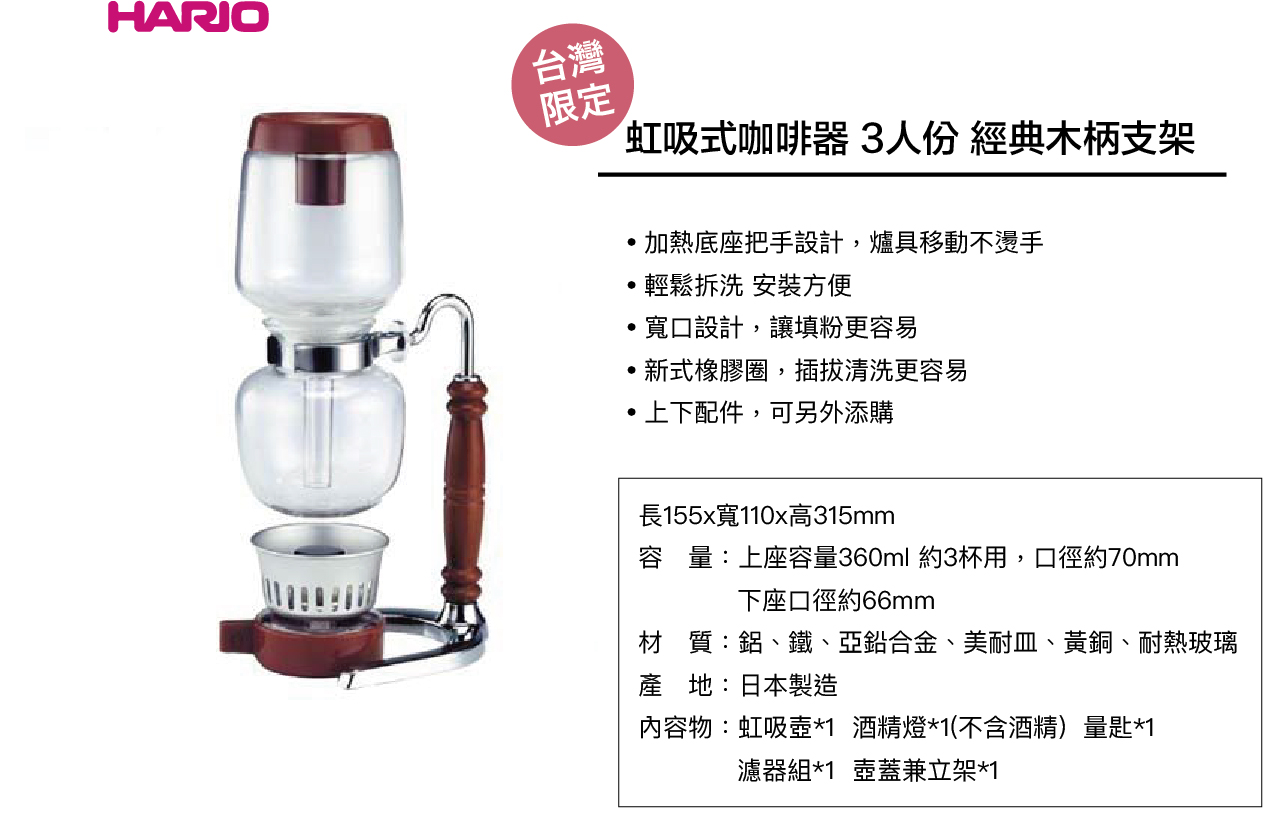 台灣獨賣!木柄支架更精緻,不同於 TCA 系列的壺身設計讓沖煮過程更柔和,增添咖啡風味!
