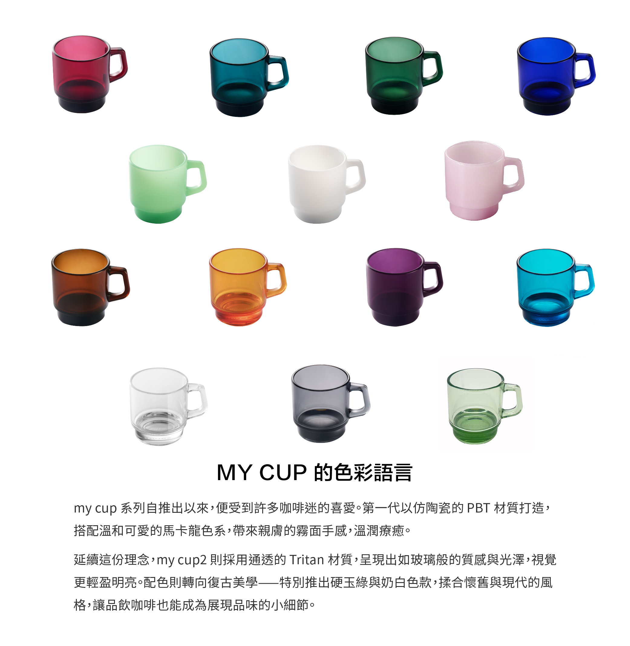 結合玻璃般的清透質感與輕巧耐摔的 Tritan 材質,my cup2 是一款容量 80ml 的可重複使用時尚試飲杯,適合參加展會或日常隨身攜帶使用。附有掛繩與掛鉤設計,方便掛在包上或頸間,隨時隨地都能風格試飲。杯身可客製logo,亦適合作為品牌贈品或活動小物。