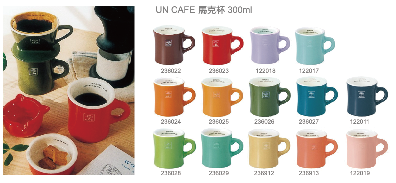 300ml UN CAFE 白雲土材質,杯壁厚實卻輕巧。 多款顏色可選擇,可搭配同色系濾杯。
